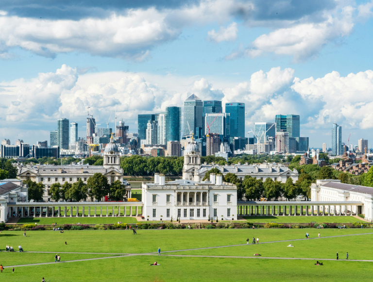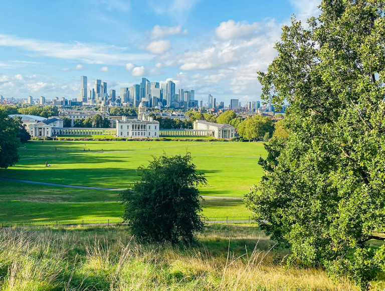 Greenwich Park’s Point Hill offers sweeping views across London – a peaceful green setting perfect for morning walks and sunset panoramas.