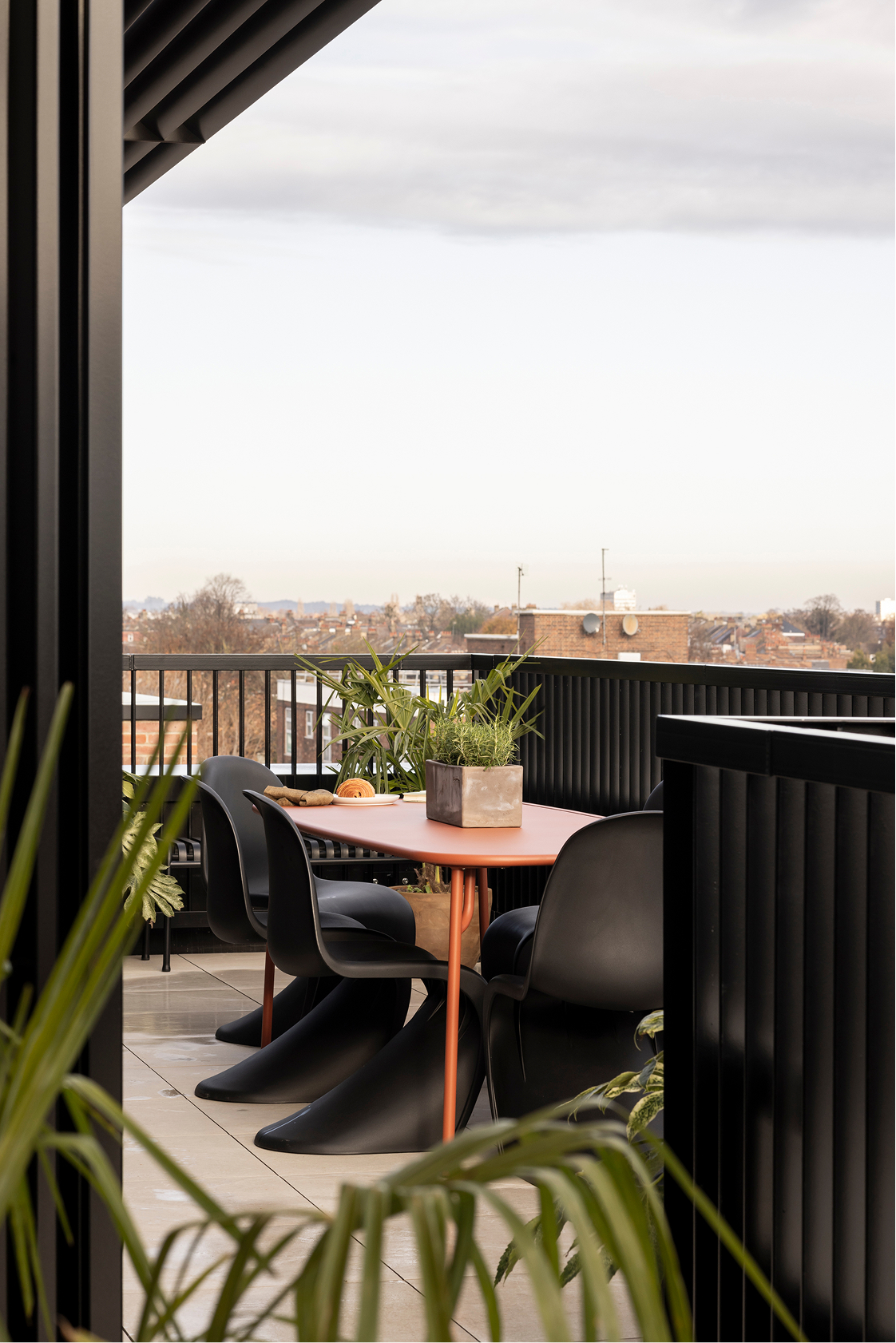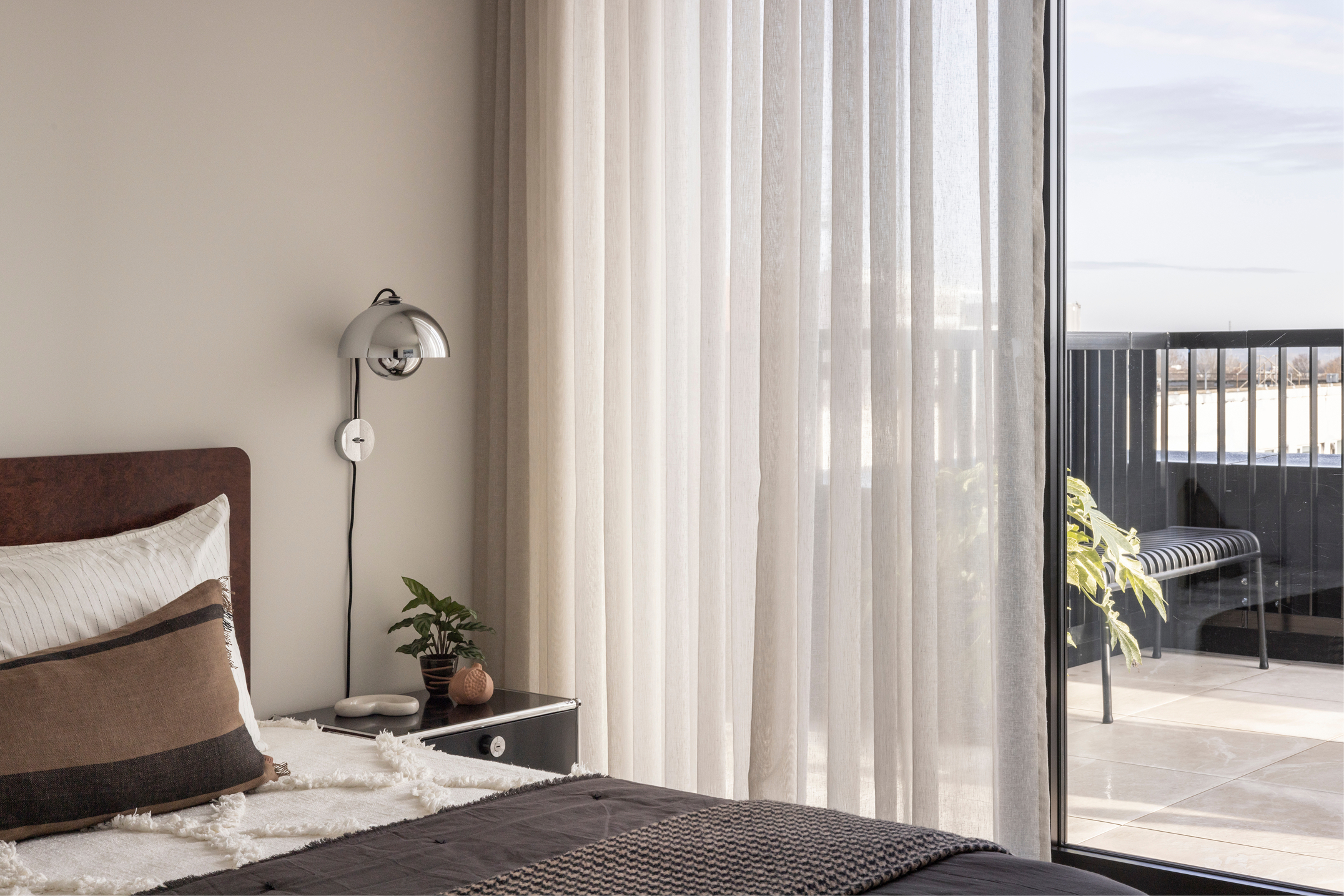 In the Master Suite, a dressing room delineates the space between sleeping and bathing, with en-suites nestled to one side – a calm space for daily rituals. When you wake, you look out onto the leafy tree-lined street or densely planted courtyard beyond your generous balcony.