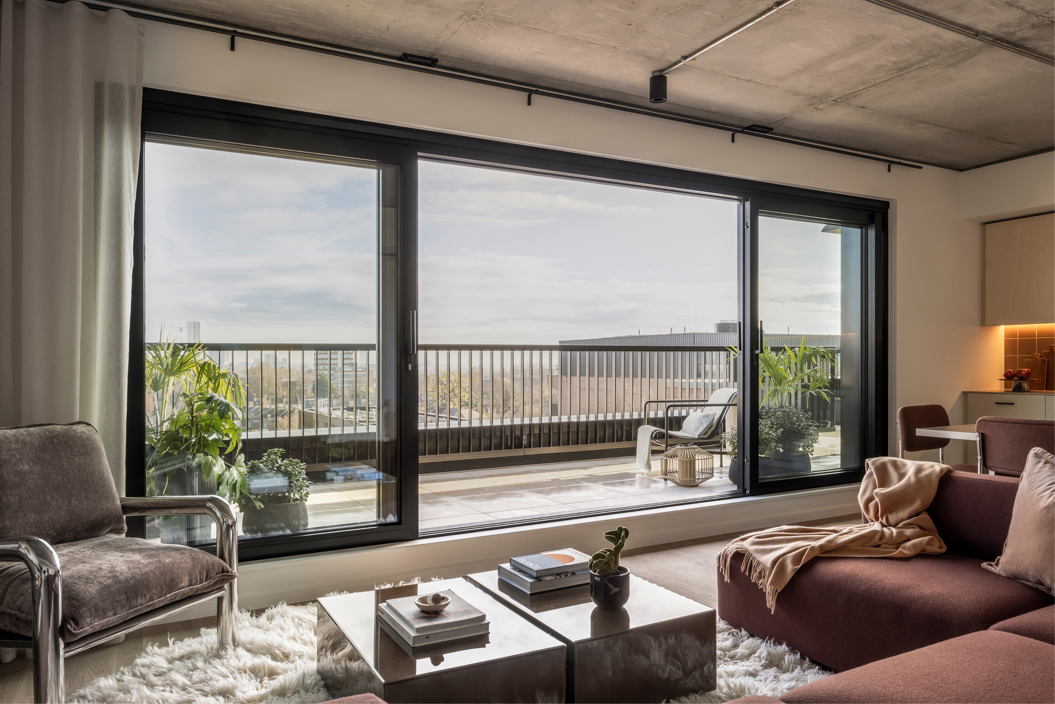 Outside, industrial charm welcomes you home, with stepped bricks, blackened metalwork and a verdant courtyard garden. Inside you’ll find, 71 beautifully crafted homes – each one generous, comfortable and meticulously detailed. Layered with texture – warm timbers, exposed concrete and industrial fittings. The result is an inspiring, stimulating place to live.