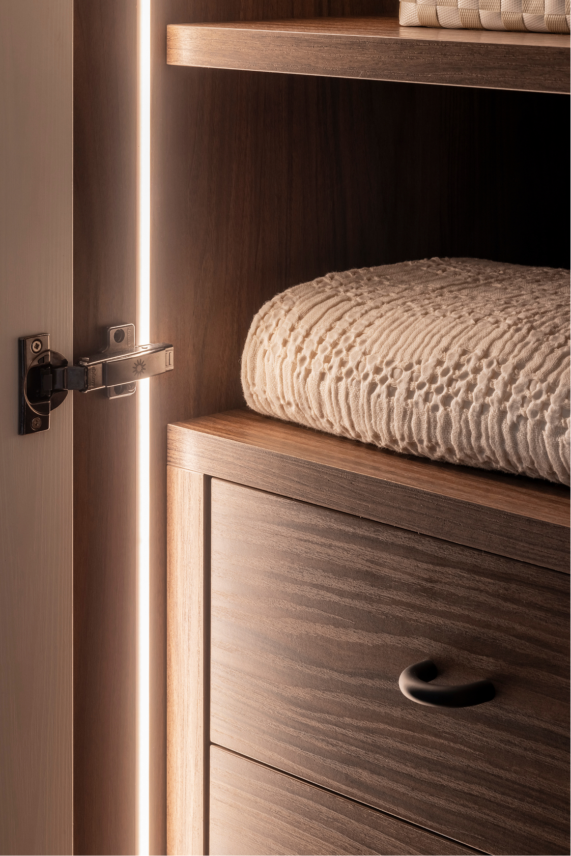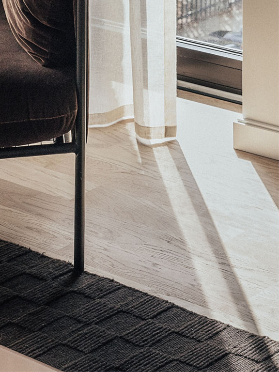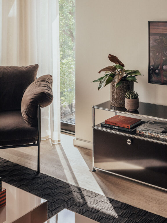 We know how lighting can enhance your mood and wellbeing, and how your needs change as the hours and seasons pass. Linear LEDs, loft-like track lighting and pendants are precisely placed throughout to create a calming experience, each fully dimmable. This functionality is ideal for creating a peaceful retreat in the bathroom, which features a rain shower, brushed black brassware designed in London, and matt white sanitaryware from Barcelona-based company Roca.